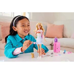 A Barbie "Malibu" Roberts está pronta para sair para o seu próximo destino com o seu cachorrinho e mais de 10 acessórios de viagem. As crianças podem usar a folha de adesivos para decorar a bagagem que abre e fecha para uma brincadeira realista! Leve sua mala e mochila com itens essenciais de viagem e recrie seus momentos favoritos ou invente novas aventuras. Pronta para ajudar a imaginação a decolar, esta Barbie®, inspirada em It Takes Two™, é um excelente presente para crianças a partir de 3 anos. A boneca não fica em pé sozinha. As cores e as decorações podem variar.