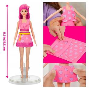 Barbie e Play-Doh: uma união de brinquedos incríveis! As crianças poderão criar estilos super fofos com o conjunto de massinha Corações e Penteados Play-Doh! É fácil e divertido criar roupas para a boneca Barbie com este conjunto. Basta colocar a boneca no suporte e usar os cortadores para cortar vestidos usando a folha de massa Play-Doh com texturas que simulam tecido. Depois, é só vestir a Barbie de maneiras criativas! Em seguida, é possível fazer 2 penteados com massa Play-Doh usando os moldes de cabelo curto e longo. As crianças também podem explorar a criatividade e criar seus próprios penteados à mão! Adicione acessórios para a boneca Barbie, como um cinto e sapatos, para completar o look. O kit vem com 2 potes de massa de modelar Play-Doh nas cores rosa e roxo para adicionar ainda mais detalhes. Além de serem ótimos brinquedos para crianças, os kits de massinha Play-Doh incentivam atividades de modelagem em família e até projetos escolares, já que as crianças podem aprender sobre formas, texturas e combinações de cores.