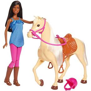 PRODUTO INTERNACIONAL. PRODUTO INTERNACIONAL. A boneca Barbie está pronta para ajudar a imaginação a entrar na brincadeira a cavalo! Ela vem com um lindo cavalo equo com uma sela e freio para que esses dois besties possam sair em aventuras juntos. Basta colocá-la no cavalo para começar uma história. Barbie usa uma roupa de equitação casual com botas e capacete e tem joelhos que dobram para que ela possa sentar no cavalo. As crianças vão adorar cavalgar com essas duas amigas e explorar o mundo porque quando uma garota brinca com barbie, ela imagina tudo o que pode se tornar! Inclui boneca Barbie vestindo moda e acessórios, cavalo com freio removível e sela e capacete para boneca. A boneca não pode ficar sozinha. As cores e decorações podem variar.