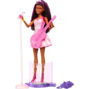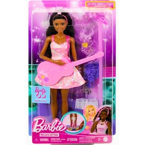 As crianças podem explorar o mundo do trabalho com a boneca 65th Anniversary Careers e conjuntos de acessórios que comemoram alguns de seus papéis favoritos dos fãs! Cada conjunto traz uma boneca fashion com 10 acessórios temáticos de seu trabalho - um deles com recurso interativo! Veterinária da fazenda - Ao ajudar a boneca a dar o adorável remédio para o cordeiro em sua garrafa, suas orelhas balançam – tão fofas! Estrela Pop - Ao prender a boneca Barbie no palco e girar, começa o show com giros e movimentos enquanto ela toca com seu microfone ou violão!