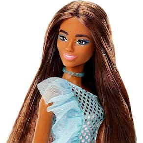 Boneca Barbie Morena Vestido Glitter Azul - Mattel