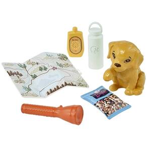 Inclui boneca Barbie vestindo camiseta, shorts, 1 par de sapatos, 1 boné e 1 par de óculos com 1 cachorrinho, 1 caixa de transporte para animais de estimação, 1 mapa, 1 garrafa de água, 1 frasco de protetor solar, 1 lancheira, 1 lanterna e 1 câmera. Boneca não pode ficar sozinha. Cores e decorações podem variar