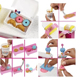 Boneca Barbie Playset Confeitaria com Massinha 5+ HJY19Mattel Boneca Barbie Playset Confeitaria com Massinha 5+ HJY19Mattel As crianças podem encenar histórias de cozimento com a boneca Barbie Malibu Roberts e o playset It Takes Two inspirado em cenas icônicas de cafés. Com três cores diferentes de massa, formas e equipamentos de cozinha, é fácil fazer e servir deliciosos pastéis que incluem croissants, cupcakes e rosquinhas. Os jovens padeiros podem decorar e exibir suas guloseimas e, em seguida, encaixotá-los para recriar cenas ou inventar novas aventuras. Características do Produto: - Material: Plástico - Idade recomendada: A partir de 5 anos - Referência: HJY19 - Contém: 1 Boneca, 1 Bancada de Serviços, 2 Potes de Massinha, Acessórios de COnfeitaria, 2 Pratos com Talheres, - Tamanho da Caixa LxAxP : 36cmx32cmx8cm - Tamanho do produto aproximadamente LxAxP : Bancada: 29cmx19cmx7cm - Código de Barras: 194735098156 - Qualquer dúvida nos pergunte que teremos o prazer em lhe ajudar. - Despachamos em 1 dia útil após o pagamento ser aprovado . - Imagens ilustrativas.Homologação Inmetro: IP-BRI-0992/2021-01