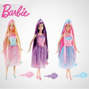 Boneca Barbie Princesa Cabelo Longo Rosa - Mattel Descubra os Reinos Mágicos da Barbie com este lindo sortimento de princesas do Reino dos Penteados Mágicos! Com cabelos longos -- 20 cm -- estas lindas princesas estão prontas para os maravilhosos penteados que você criar! Cada uma vem com uma escova e faixa para cabelo. Além disso, suas contas funcionam com a ferramenta de trancas que vem com o produto Barbie Princesa Penteados Mágicos (vendido separadamente).