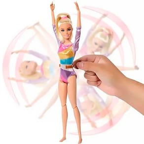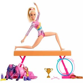 As crianças vão adorar esse conjunto de ginástica da Barbie com boneca fashion, recurso de salto com giro e mais de 10 acessórios para os eventos favoritos dos fãs!