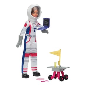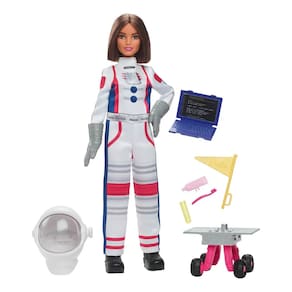 Em comemoração ao 65º aniversário da boneca Barbie, uma coleção de bonecas fashion destaca as profissões favoritas dos fãs, como este conjunto de astronauta. A boneca Barbie usa um traje espacial com toques icônicos em rosa e vem com 10 acessórios temáticos, incluindo um capacete que altera a visão e um veículo espacial rolante! As crianças podem brincar de faz de conta e sonhar alto — e os colecionadores vão querer todos! Cada boneca é vendida separadamente, sujeita à disponibilidade. As bonecas não podem ficar em pé sozinhas. As cores e as decorações podem variar.