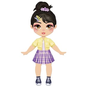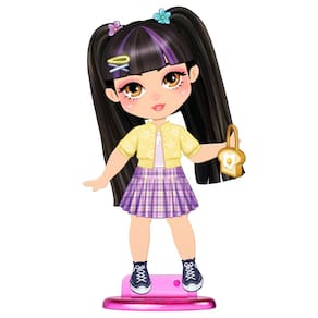 Características: Conteúdo da Embalagem: 1 Boneca, 1 Suporte e 3 Folhas autocolante