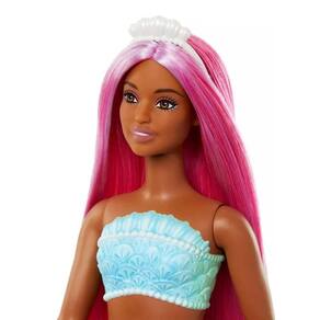 Boneca Barbie Sereia Mundo Da Fantasia - Cabelo Rosa Hrr04 - Mattel Mergulhe em um mundo de magia e fantasia com a boneca Barbie Sereia Mundo da Fantasia! A boneca sereia apresenta um corpete de design exclusivo adicionando um toque de charme . Com sua tiara inspirada no oceano, complementando seu cabelo vibrante e com mechas, essa sereia está pronta para aventuras emocionantes. As crianças podem explorar a magia das sereias, inspirando histórias de amizade e imaginando mundos fantásticos sob as ondas! Código: 101794 Dimensões aprox. da embalagem em cm: 5x10x32 Peso liq. Aproximado do produto na embalagem: 190g Altura aprox. da boneca em cm: 28 Referência do Modelo: HRR04 Certificado Inmetro: 005388/2021 Conteúdo da Embalagem: 01 Boneca Sereia Composição/material: Plástico Idade recomendada: a partir de 3 anos Garantia: 90 dias contra de fabricação pelo fabricante. Imagens meramente ilustrativas. As cores e tonalidades podem variar. Gênero - Meninas Meninos Unissex Idade - 3 anos 4 anos 5 anos 6 anos 7 anos Coleção - Colecionável Personagens - Barbie Sereias