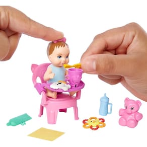 Boneca pequena e acessórios Barbie Skipper Babysitters Inc., conjunto de brinquedos First Tooth com dentes que aparecem e desaparecem