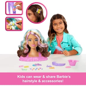 - Brinque por incontáveis horas penteando o cabelo com a cabeça de modelagem da boneca Barbie