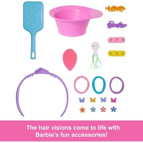 - Existem muitas maneiras de pentear o cabelo da Barbie. Use o pincel incluído para colocar o cabelo colorido da Barbie em tranças, coques, rabos de cavalo e muito mais!