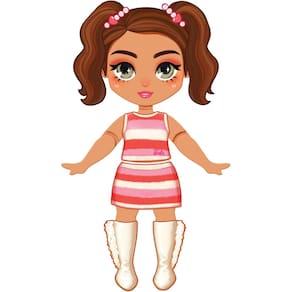 Características: Conteúdo da Embalagem: 1 Boneca, 1 Suporte e 3 Folhas autocolante