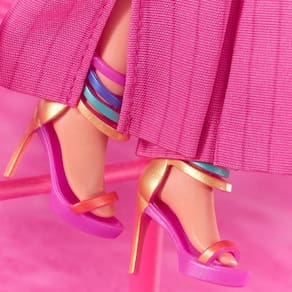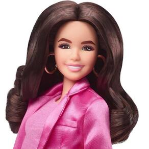 Inspirada na personagem Gloria em Barbie O Filme, esta Barbie colecionável dá as ordens em seu terninho todo rosa, grandes cachos volumosos e impressionantes saltos plataforma multicoloridos.