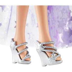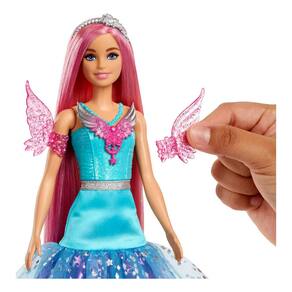 Esta boneca Barbie só pode ser descrita como mágica com seu longo cabelo de fantasia e vestido brilhante! Ela tem cabelo roxo de 17,78 cm de comprimento e inclui acessórios como pente, fita brilhante e grampo decorativo. A boneca Barbie Malibu Roberts usa uma roupa brilhante inspirada em sua aparição em Barbie A Touch of Magic. Dois animais de estimação e acessórios de estilo aumentam a diversão fantástica! Vem com uma adorável amiga borboleta, além de um cachorrinho de estimação vestindo um tutu super fofo. A boneca não consegue ficar de pé sozinha. Cores e decorações podem variar.