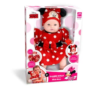 Boneca Bebê - Classic Dolls Disney - Recém Nascido - Minnie - Roma : essa linda boneca traz a doçura da ratinha mais encantadora da Disney. Além da roupa personalizada inspirada na personagem Minnie, a boneca também vem com pijaminha estampado, chupeta e uma certidão de nascimento para registrar o bebê. A Boneca Classic Dolls Minnie possui membros em vinil e corpo macio preenchido com fibra sintética e algodão. As crianças vão se divertir de montão com a boneca recém nascida inspirada na Minnie Mouse INFORMAÇÕES: • Produto: Boneca Classic Dolls Minnie Mouse • Marca: Roma Brinquedos • Coleção: Classic Dolls Recém Nascido • Linha: Disney • Tipo: Boneca bebê com acessórios • Categoria: Bonecas e Cia • Tamanho (C x A x L): 23 x 40.5 x 13 cm • Volume (Peso): 0.580 kg • Conteúdo: boneca, pijama, chupeta e certidão de nascimento • Recomendação: para crianças a partir de 03 anos de idade ESPECIFICAÇÕES: • Referência: 5162 • Código de Barras: 7896965251624 • Embalagem (C x A x L): 42 x 29.7 x 16.2 cm • Embalagem (Peso): 1.010 kg kg • Material / Composição: - Boneca: membros em vinil e corpo macio em algodão e fibra sintética - Roupinha: algodão e poliéster - Acessórios: plástico • Registro: 03129/2019 • Certificado: Órgãos Autorizados - OCP´S (Organismos de Certificação de Produtos) BENEFÍCIOS DE BRINCAR: • Eleva a autoestima • Exercita a memória • Estimula o raciocínio • Exercita o imaginário • Desenvolve a criatividade • Desenvolve percepção visual • Desperta a atenção e curiosidade • Desenvolvimento neuropsicológico • Estimula habilidades motoras básicas • Incentiva a comunicação e linguagem • Desenvolve aspectos emocionais e afetivo • Estimula o reconhecimento de formas e cores AVISO: • As imagens são meramente ilustrativas • Os pesos, tamanhos e medidas são aproximados • As cores e estampas dos produtos podem ter variações • As informações são de responsabilidade do fabricante ou fornecedor