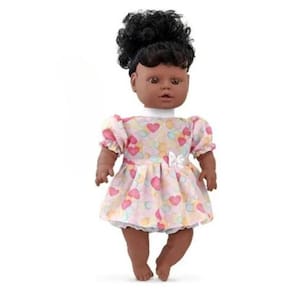 A boneca Isadora é linda e sofisticada. Possui 38 cm de altura, corpo em tecido macio, ideal para ser abraçado, com cabeça, pernas e braços 100% em vinil atóxico, além de cabelos cacheados.