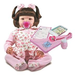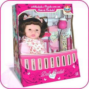 Boneca Realista Tipo Bebe Reborn Eloise Eloise é uma linda boneca que vai encantar qualquer pessoa É uma boneca sofisticada, com alto padrão de qualidade, faz parte da coleção Doll Realist da Sid Nyl que transmite com maestria toda beleza e inocência de um bebê de verdade. É super fofa, com o rosto cheio de delicados detalhes, gostosa de abraçar e apertar, e compõe um delicioso cheirinho de bebê perfumado. Especificações Técnicas: - Produto: Boneca Realista - Marca: Sid Nyl - Modelo: Reborn Eloise - Articulada - Membros Fabricado em Vinil Siliconado - Corpo Fabricado em Tecido 100% Poliéster - Acompanha Acessórios Chupeta,Fralda,Naninha,Mamadeira,Brincos e Certidão de Nascimento - Chupeta e magnética - Pesada como um Bebê 1,145kg - Medidas Aproximadas do Produto (AxLxC): 46x27x14 cm - Medidas Aproximadas da Embalagem (AxLxC): 40x33x23 cm - Peso Aproximado: 1,830kg Conteúdo da Embalagem: - 1 Boneca Realista - 1 Chupeta - 1 Mamadeira - 1 Naninha - 1 Fralda - 1 Certidão de Nascimento - 1 Par de Brincos - 1 Lacinho de Cabelo INMETRO: CE - BRI/IQB - 167 NM 300/2002