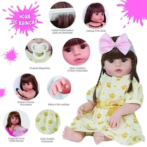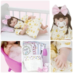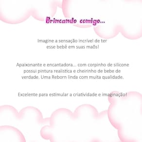 A nossa empresa tem a missão de garantir a total satisfação de seus clientes, onde a qualidade e o atendimento excepcional são nossa prioridade Estamos muito felizes em apresentar a Boneca Bebê Reborn para você, um item cuidadosamente selecionado para atender às suas necessidades. Compre agora e experimente a diferença em comprar com a nossa loja.A Boneca Bebê Reborn é o sonho das meninas Produzida 100% em vinil siliconado, essa boneca pode sentar, deitar e fazer tudo que a sua imaginação deixar. Com seus olhos castanhos e detalhes realistas ela é encantadora e apaixonante. Sua criança merece a melhor qualidade de bebê reborn Marca: Cegonha Reborn DollsModelo: Boneca Bebê RebornCor: BegeMaterial: Vinil Siliconado AtóxicoCaracterísticas Principais: Membros Articulados, Corpo de Silicone, Detalhes Realistas.Medidas Aprox.: Altura da Boneca: 52cm Peso Aprox. Da Boneca: 0,745 Kg Certificado INMETRO Recomendado para crianças maiores de 03 anosConteúdo:1 Bebê Reborn Cabeça, Membros e Corpo de Vinil 1 Vestido Coroa1 Par de Cílios1 Par de Brinco1 Chupeta1 Mamadeira Simples5 Certificados2 Fraldas1 Laço CetimGarantia30 dias de garantia oferecida pelo fabricante.Dúvidas Frequentes:1. Ela acompanha ItensR. Sim, todos os itens da descrição.2. Ela emite algum somR. Não, ela não emite nenhum som.3. Pode dar banho na bonecaR. Sim, pois o material do corpo é de Silicone.4. Pode escolher a cor dos olhos da bonecaR. Não, os olhos já vêm de fábrica.Tags: Boneca, Bebe, Reborn, Realista, Menina, Infantil, Silicone, Bailarina, Princesa, Linda, Fofa, Banho, Enxoval, Completo, Grande, Baby Alive.Homologação Inmetro: IP-BRI-2749/2021-01