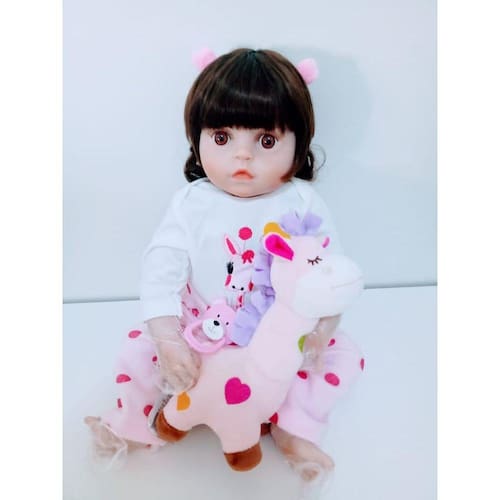 Boneca Bebe Reborn Realista Girafinha Menina de Silicone 48cm Olhos Castanhos