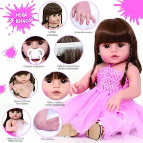Tags: Boneca, Bebe, Reborn, Realista, Menina, Infantil, Silicone, Princesa, Linda, Morena, Loira, Fofa, Banho, Enxoval, Completo, Grande, Baby Alive.