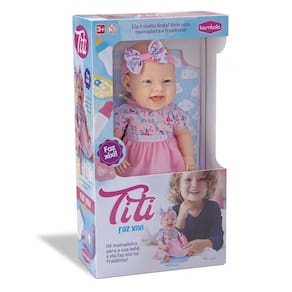 Boneca Titi faz Xixi Conheça a encantadora Titi que traz consigo toda a magia de brincar. Vestida com um vestido delicado, ela é muito linda! Cada detalhe de sua roupa reflete a beleza. Venha explorar um mundo de sonhos e imaginação! Informações: - Ref.: 849 - Marca: Bambola - Modelo: Boneca Titi faz Xixi - Material: Polipropileno, Vinil e Tecido - Material Corpo: Vinil - Tamanho ideal para brincadeiras de cuidado - Código de barras (EAN): 7899871708497 - Altura Aproximada: 34 cm - Certificação: 7789-2023-BRI-1M - Recomendado para crianças maiores de 03 anos de idade. Conteúdo da Embalagem: - 1 Boneca - 1 Mamadeira - 1 Fralda Uma ótima opção para incentivar a imaginação, responsabilidade e carinho das crianças.