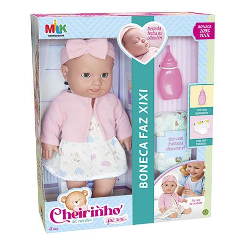 A Boneca Cheirinho de Neném Faz Xixi da Milk é perfeita para as crianças que adoram cuidar, mimar e brincar de ser mamãe ou papai. Com um cheirinho suave de bebê e a função de fazer xixi de verdade, a brincadeira fica ainda mais real e divertida!