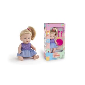 Uma linda boneca que vai encantar as garotinhas! Acompanha pratinho, garfinho e faquinha para brincar de comidinha com o bebê. As meninas vão amar!