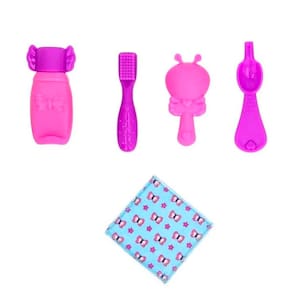 Este conjunto encantador acompanha a boneca Bella e oferece uma experiência completa com acessórios interativos que incluem itens do dia a dia, como mamadeira, talheres, e até roupinhas.