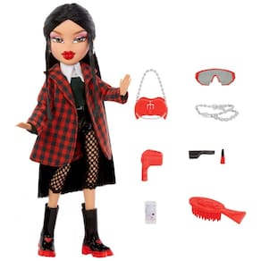 As Meninas com Paixão pela Moda estão se expressando por meio de novos trajes, penteados e looks de maquiagem! Cloe, Yasmin, Jade e Sasha continuam a explorar seus estilos pessoais e looks exclusivos nessas novas bonecas. Jade veste um ousado casaco xadrez sobre uma combinação de suéter com gola, shorts de couro falso, meia-calça e botas pretas com detalhe de coração. Jade acessoriza com brincos de declaração prateados, um cinto prateado em camadas e uma bolsa vermelha. Ela também vem com acessórios extras como óculos de sol, esmalte de unhas, um telefone, secador de cabelo, prancha de cabelo e escova de cabelo! Cada boneca inclui um pôster exclusivo e possui 15 pontos de articulação para fazer tantas poses! A paixão fashion de Jade é um estilo que faz declaração! Seus amigos a chamam de Kool Kat porque ela é a gata mais legal que conhecem! Jade ostenta cabelos longos, retos e puxados para trás e uma maquiagem rosa com lábios vermelhos. Colecione todas as 4 bonecas Alwayz Bratz - Cloe, Yasmin, Jade e Sasha - e assista à série animada Alwayz Bratz no TikTok agora!