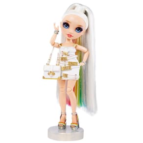 - CARACTERÍSTICAS MARAVILHOSAS: Amaya está vestida com arco-íris da cabeça aos pés. Ela tem traços lindos e detalhados em sua moda, lindos fios brancos lisos com fios vermelhos, laranja, amarelos, verdes, azuis e roxos em um cabelo alto de rabo de cavalo, cílios longos e olhos de vidro. Colecione o arco-íris de todas as lindas bonecas da moda Rainbow High.
