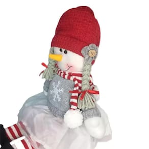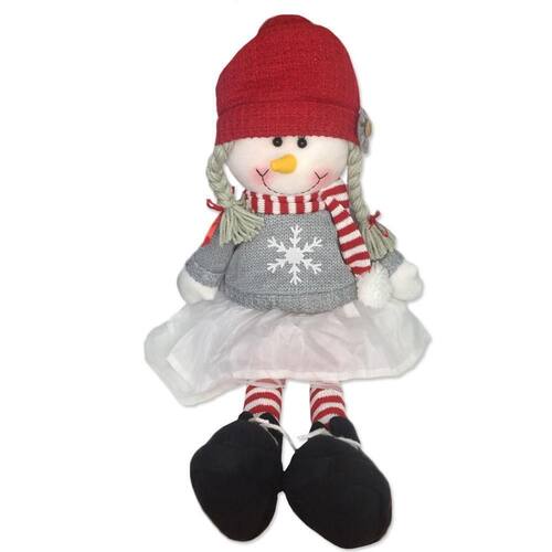 Boneca De Neve Sentada Gorro Vermelho Natal 40Cm