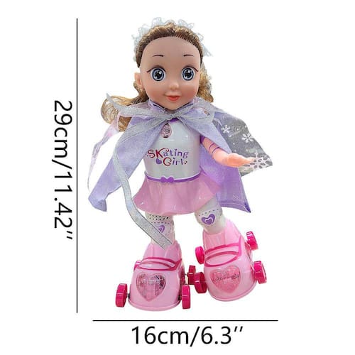 Boneca de patins infantis música brilhante multifuncional brinquedo de boneca de menina fofa Descreva: Agora, com este novo brinquedo maravilhoso, seu bebê pode brincar com seu melhor amigo boneca O brinquedo musical skate girl é projetado para trazer alegria à vida do seu filho através de suas funções interativas e design bonito. Ele vai andar de skate pela sua casa com patins e tocar música legal Design vibrante: Esta linda boneca e seus patins estão prontos para rolar. O design detalhado e colorido aquecerá o coração do seu filho enquanto brinca. Ao cantar e patinar, ao encontrar obstáculos, o brinquedo interativo de canto mudará de direção e não ficará preso a nada. Brinquedos musicais interativos - além de aprender música enquanto brincam, também podem ajudar as crianças a reconhecer cores e formas. Melhore sua inteligência, processamento auditivo e capacidade prática. Música e luzes LED - enquanto toca músicas interessantes e emocionantes, ele projeta efeitos de iluminação brilhantes e coloridos com padrões. Feito de materiais certificados de alta qualidade, seguros e duráveis. Requer 3 pilhas AA (não incluídas). Especificações e notas adicionais: Necessita de montagem simples e fácil Recomendado para 3 anos de idade ou mais. Recomenda-se o uso de pisos duros. Feito de materiais certificados de alta qualidade, seguros para crianças Tamanho: 29X16cm O pacote inclui: 1 X boneca de skate