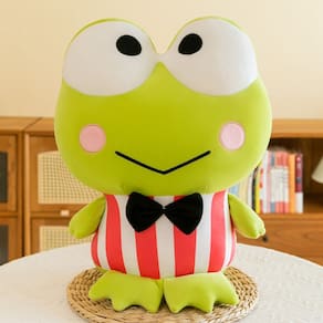 Material: pelúcia Tamanho: 40 cm Peso: 550 G Design adorável de sapo de desenho animado — apresenta um sapo de olhos grandes com bochechas rosadas, uma roupa listrada de vermelho e branco e uma gravata borboleta preta, criando uma aparência divertida e elegante. Macio e recheado para maior conforto — Feito com tecido de pelúcia premium e enchimento macio, oferecendo uma textura suave e confortável, perfeita para crianças e colecionadores de pelúcia. Construção durável e segura — Materiais adequados para crianças e costuras reforçadas garantem durabilidade duradoura e uso seguro para todas as idades. Perfeito para brincar e decorar — funciona como uma boneca de pelúcia para brincadeiras criativas, uma linda almofada decorativa para camas e sofás ou uma companheira de pelúcia reconfortante. Tamanho médio e leve — mede 40 cm e pesa 550 g, facilitando o transporte, exibição ou armazenamento em quartos, salas de jogos ou salas de estar.