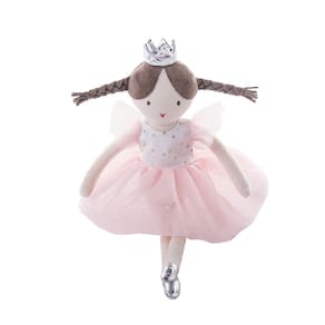 Material: pelúcia Tamanho: 34 cm Charming Ballerina Design — apresenta uma linda bailarina em estilo cartoon com tranças, uma coroa prateada e um vestido de tule rosa macio, exalando elegância e capricho. Textura macia e recheada — Feita de tecido de pelúcia premium e preenchida com algodão macio para uma sensação suave e aconchegante, ideal para brincadeiras ou decoração infantil. Perfeita para acentos de quarto — esta boneca tem 34 cm de altura, o que a torna uma adição atraente às prateleiras do berçário, camas ou acessórios decorativos para quartos de meninas. Detalhes elegantes por toda parte — Os sapatos de balé prateados e a blusa com estampa de estrelas adicionam toques refinados, realçando o charme e o apelo da boneca de conto de fadas. Design seguro e leve — cuidadosamente costurado e fabricado com materiais não tóxicos e que não agridem a pele para garantir o uso seguro e duradouro para bebês e crianças.