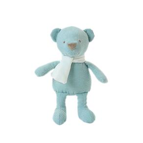 Material: pelúcia Tamanho: 23 cm. Adorável design azul claro — apresenta um formato de urso azul pastel com costuras delicadas e um lenço branco, evocando uma sensação aconchegante e relaxante. Tamanho perfeito de 23 cm — Compacto e fácil de transportar para crianças pequenas, o que o torna ideal como companheira na hora de dormir ou como boneca confortável diária. Acabamento em veludo cotelê texturizado — Feito de tecido de pelúcia macio e canelado que é suave para a pele e adiciona um elemento tátil para estimular os sentidos das crianças. Seguro para uso diário — Detalhes faciais bordados e materiais macios o tornam adequado para crianças pequenas, sem peças pequenas ou bordas duras. Toque decorativo encantador — funciona como uma linda decoração de berçário com sua cor suave e silhueta clássica de brinquedo de pelúcia.
