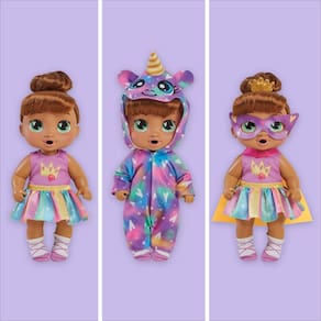 Conjunto de brinquedos Baby Alive Super BFF Sophia Sparkle Brown Hair Dress Up, 11 polegadas, brinquedos para meninas, meninos e mais de 3 anos (exclusivo da Amazon) — LET'S PLAY FINGE SUPERHERO: Sophia Sparkle é uma boneca divertida com roupas que combinam com seus superpoderes imaginários de unicórnio! - 3 LOOKS SUPER FOFOS: as roupas da boneca Baby Alive incluem sua camisa e saia diurnas, máscara e capa de super-heroína, meias e pijamas aconchegantes de unicórnio para a noite. Misture e combine as peças para obter mais diversão. 3 LOOKS SUPER FOFOS: as roupas da boneca Baby Alive incluem sua camisa e saia diurnas, máscara e capa de super-heroína, meias e pijamas aconchegantes de unicórnio para a noite. Misture e combine as peças para se divertir mais - EU BEBO E MOLHO MINHA FRALDA: Encha sua caixa de suco fingida com água e ela realmente bebe. Não se esqueça de trocar a fralda (vem com 2) - PRETTY HAIR & TIARA BARRETTE: Sua cabeça cheia de cabelos a deixa ainda mais estilosa! Adicione seu acessório de cabelo em forma de coroa para estilos mais divertidos com cada roupa - Boneca de 11 polegadas de altura: ela é uma boneca encorpada de 11 pol/28 cm e é uma ótima adição aos brinquedos infantis para meninas e meninos de 3 anos ou mais - VISTA-ME E CONTE HISTÓRIAS: brincadeiras inspiradoras e criativas são uma ótima maneira de dar presentes para meninas e meninos que adoram vestir bonecas e brincar de fazer de conta
