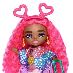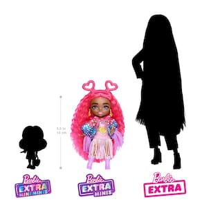 Boneca de viagem Barbie Extra Fly Minis, look Desert Festival com cabelo magenta em franjas, vestido e acessórios com franjas — Com 5,5 polegadas de altura, essas bonecas pequenas estão prontas para as férias em uma moda moderna com estilo extra. Cada boneca vem com acessórios temáticos de destinos de viagem que fazem uma grande diferença. - Esta boneca Barbie Extra Minis pronta para o festival está indo para o deserto com seu cabelo rosa extra longo, capa com franjas brilhantes e vestido com franjas metálicas. - Ela vem com uma mala em forma de cacto e estiliza seu look com uma faixa de coração, brincos em forma de coração, cinto dourado em forma de coração e botas de cowboy roxas. - Com um suporte de boneca incluído e posabilidade nos cotovelos e joelhos, esta pequena boneca é perfeita para brincar de moda ou exibir a Barbie Extra Minis. - As bonecas Barbie Extra Minis usam acessórios super fofos e o estilo EXTRA FLY, o que as torna um ótimo presente para crianças que amam moda e aventuras de viagem.