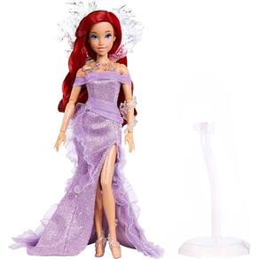 Comemore os 35 anos da Pequena Sereia da Disney com esta boneca Ariel de edição especial de colecionador! Inspirado na inesquecível cena final em que ela sai do oceano como humana, o vestido da boneca Ariel é reinventado, drapeado com babados transparentes e detalhes iridescentes