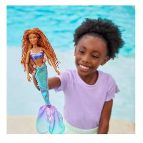 A boneca cantora vem com uma cauda esvoaçante removivel , um lindo vestido azul, sapatos e fita de cabelo. A inspiração perfeita para horas de brincadeiras, esta boneca especial canta uma música do filme para despertar a imaginação em inglês . Pressione o botão nas costas para ouvir a canção do filme Roupas inspiradas no filme A Pequena Sereia 2023 Totalmente articulável Parte da coleção Disney Little Mermaid Live Action