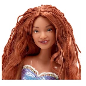 A boneca cantora vem com uma cauda esvoaçante removivel , um lindo vestido azul, sapatos e fita de cabelo. A inspiração perfeita para horas de brincadeiras, esta boneca especial canta uma música do filme para despertar a imaginação em inglês . Pressione o botão nas costas para ouvir a canção do filme Roupas inspiradas no filme A Pequena Sereia 2023 Totalmente articulável Parte da coleção Disney Little Mermaid Live Action