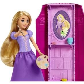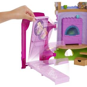 Com 6 áreas para brincar, 14 acessórios, boneca da Rapunzel e figura do Pascal, as crianças vão adorar explorar este conjunto divertido inspirado em Enrolados da Disney.