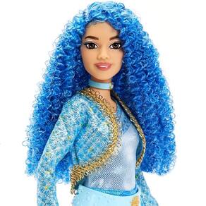Com os seu cabelo ondulado azul brilhante e a sua roupa icônica, esta boneca fashion parece mesmo a campeã real que é no filme.