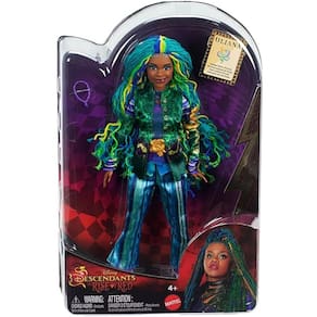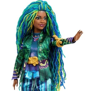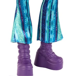 Com longas tranças e roupas exclusivas, esta boneca de moda se parece com sua personagem no filme, como a bruxa adolescente do mar com traços de garota malvada.