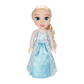 Compartilhe aventuras magicas ao lado da boneca Elsa, vestida em seu iconico vestido inspirado em cristais de gelo e bracos e pernas articulados.