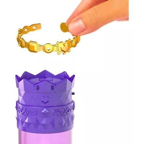 Cada boneca é um mistério até que seja adicionada água, ativando a tecnologia Color Reveal. Será uma princesa ou um vilão Mais cinco surpresas incluem um anel e uma pulseira com joias para a criança, um baú de tesouro e peças de brincar com temas de personagens