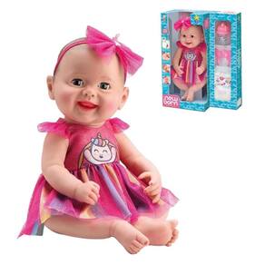 Boneca Diver New Born Unique Collection Vestido Arco Iris - Diver Toys A boneca Diver New Born Unique Collection é um encanto de ternura e realismo, perfeita para brincar e cuidar. Com detalhes rosados nas dobrinhas e unhas pintadas, ela parece um bebê de verdade. Acompanha uma mamadeira mágica, uma fralda descartável e uma chupeta com corrente, tornando a brincadeira ainda mais autêntica e divertida. Seus olhinhos móveis adicionam um toque de realismo, enquanto o lindo vestido de arco-íris a torna ainda mais adorável. Esta boneca oferece uma experiência completa de cuidado e carinho, estimulando a imaginação, cada momento se transforma em uma doce aventura de amor e cuidado. Código: 102183 Dimensões aprox. da embalagem em cm: 12x30x37 Peso liq. Aproximado do produto na embalagem: 910g Referência do Modelo: 8202 Certificado Inmetro: 002405/2022 Conteúdo da Embalagem: 01 Boneca, 01 Mamadeira Mágica, 01 Fralda descartável, 01 Chupeta Composição/material : Vinil, Termoplástico, Tecido Idade recomendada: a partir de 3 anos Garantia: 90 dias contra defeitos de fabricação pelo fabricante. Imagens meramente ilustrativas. As cores e tonalidades podem variar. Gênero - Meninas Meninos Unissex Idade - 3 anos 4 anos 5 anos 6 anos 7 anos 8 Anos Coleção - Colecionável Tipo de Boneca - Acessórios para Bonecas Bonecas Bebê Casas e Cenários para Boneca Atributos Bonecas - Sem Cabelo
