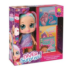 As Divers Surprises são lindas e descoladas. Toda em vinil macio, cabelos coloridos e penteados modernos, olhos marcante com glitter e toda maquiada e possui 26,5 cm de altura! Ela veio conquistar a criançada, além de linda, ela vem com várias surpresas! Recomendado para maiores de 3 anos. São 4 modelos de bonequinhas muito lindas para você colecionar!(Vendidos separadamente) Os acessórios são todos surpresa! Abra cada um e descubra!Além de lindas, cada uma acompanha 3 saquinhos e dentro de cada um deles, uma surpresa: - Um par de sapatos surpresa- Um par de acessórios para tiara de cabelo surpresa- Um chaveiro que pode servir como bolsinha da boneca ou então para criança colocar onde quiser - surpresaEspecificações:Fabricante: DivertoysRef.: 8171Cód. Barras: 7898639381712Não recomendado para crianças menores de 3 anos.As cores dos tecidos e produtos podem variar entre as imagens mostradas acima ou fotos da embalagem. Imagens meramente ilustrativas.Certificado INMETCE-BRI/APTA-N 00004-20 NM 300/2002 OCP0154Dimensões da embalagem (AxLxC): 31 x 30 x 12 cmPeso: 800gGarantia do vendedor: 7 diasGarantia do fabricante: 3 meses