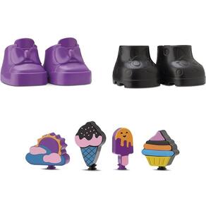 Acessórios surpresa: A cada embalagem, você encontra três saquinhos misteriosos contendo diferentes acessórios, como: Par de sapatos estilizados (Botinha ou Galocha), Apliques para colocar na tiara (Picolé, Sorvete, Cupcake ou Nuvem) e um Chaveiro que pode como bolsa para a boneca ou como acessório para a criança (Morcego, Abóbora e Coruja).