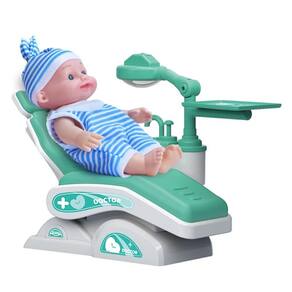 CONTEÚDO DA EMBALAGEM: 01 Boneca; 01 Cadeira de dentista de brinquedo; 01 Alicate de brinquedo; 01 Tesoura de brinquedo; 01 Seringa de brinquedo; 01 Modelador de brinquedo; 01 Dente de brinquedo; 01 Mini bandeja para utensílios de brinquedo.