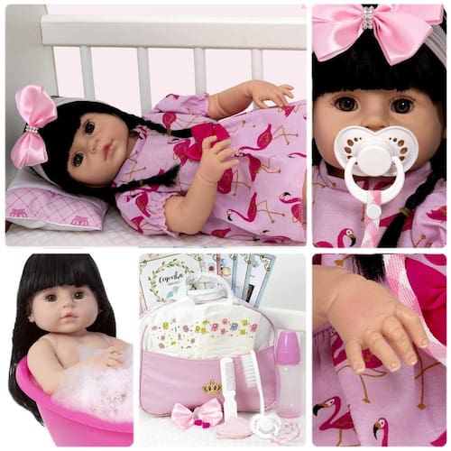 A nossa empresa tem a missão de garantir a total satisfação de seus clientes, onde a qualidade e o atendimento excepcional são nossa prioridade Estamos muito felizes em apresentar a Boneca Bebê Reborn para você, um item cuidadosamente selecionado para atender às suas necessidades. Compre agora e experimente a diferença em comprar com a nossa loja.A Boneca Bebê Reborn é o sonho das meninas Produzida 100% em vinil siliconado, essa boneca pode sentar, deitar e fazer tudo que a sua imaginação deixar. Com seus olhos castanhos e detalhes realistas ela é encantadora e apaixonante. Sua criança merece a melhor qualidade de bebê reborn Marca: Cegonha Reborn DollsModelo: Boneca Bebê Reborn Cor: BegeMaterial: Vinil Siliconado AtóxicoCaracterísticas Principais: Membros Articulados, Corpo de Silicone, Detalhes Realistas.Medidas Aprox.: Altura da Boneca: 52cm Peso Aprox. Da Boneca: 0,745 Kg Certificado INMETRO Recomendado para crianças maiores de 03 anosConteúdo:1 Bebê Reborn Cabeça, Membros e Corpo de Vinil 1 Vestido1 Par de Cílios1 Par de Brinco1 Chupeta 1 Mamadeira Simples5 Certificados3 Fraldas1 Laço Cetim2 Presilhinha1 Par de Luvas1 Bolsa Maternidade1 Prendedor de ChupetaKit Pente e Escova SimplesGarantia30 dias de garantia oferecida pelo fabricante.Dúvidas Frequentes:1. Ela acompanha ItensR. Sim, todos os itens da descrição.2. Ela emite algum somR. Não, ela não emite nenhum som.3. Pode dar banho na bonecaR. Sim, pois o material do corpo é de Silicone.4. Pode escolher a cor dos olhos da bonecaR. Não, os olhos já vêm de fábrica.Tags: Boneca, Bebe, Reborn, Realista, Menina, Infantil, Silicone, Princesa, Linda, Morena, Loira, Fofa, Banho, Enxoval, Completo, Grande, Baby Alive.Homologação Inmetro: ABCP-BRI-0276-2022-01